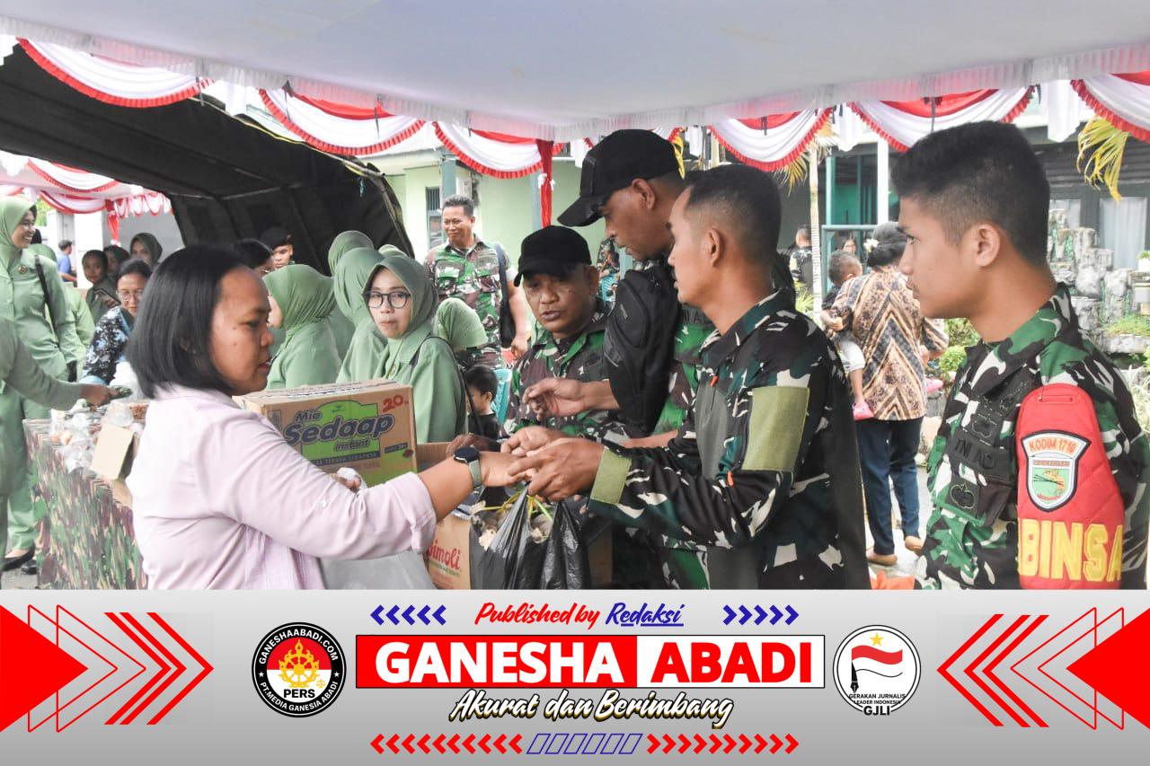 Bazar murah yang digelar Kodim 1710/Mimika menyediakan berbagai kebutuhan pokok dan bahan sembako dengan harga terjangkau. Kegiatan ini merupakan wujud kepedulian TNI dalam membantu prajurit serta masyarakat memenuhi kebutuhan menjelang Hari Raya Idul Fitri. Sejak dibuka, masyarakat terlihat antusias memadati lokasi bazar dan berbaur bersama para prajurit untuk berbelanja berbagai kebutuhan rumah tangga.