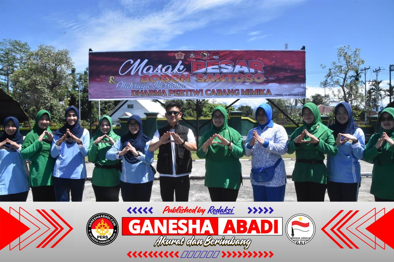 Timika – Kodim 1710/Mimika bekerja sama dengan Kogabwilhan III dan Youtuber Bobon Santoso menggelar kegiatan Masak Besar dan Olahraga Bersama Dharma Pertiwi Cabang Mimika di Lapangan Upacara Makodim 1710/Mimika, Senin (13/10/2025).