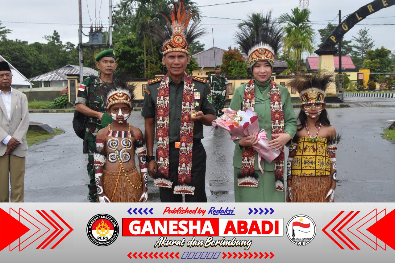 Kodim 1710/Mimika Gelar Tradisi Penyambutan Dandim dan Ketua Persit KCK