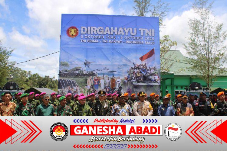 Yahukimo – Kodim 1715/Yahukimo bersama satgas-satgas TNI di wilayah Yahukimo menggelar upacara peringatan HUT ke-80 TNI tahun 2025 di Makodim 1715/Yahukimo, Minggu (5/10/2025).