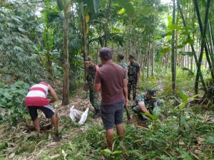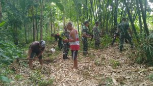 Banyuwangi – Dalam upaya menjaga kelestarian lingkungan dan penghijauan, TNI melalui Koramil 0825/20 Songgon bersama Instansi terkait dan masyarakat melaksanakan kegiatan penanaman bibit pohon sukun di bantaran sungai saluran irigasi Dusun Sumberrejo, Desa Songgon, Kecamatan Songgon.