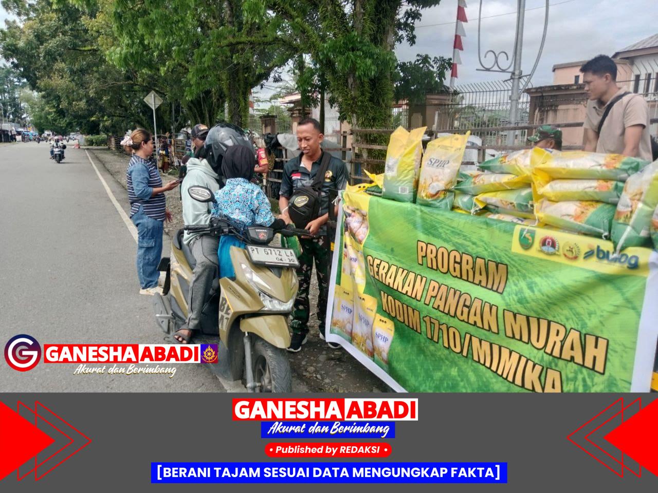 Timika – Koramil 1710-04/Tembagapura menggelar Gerakan Pangan Murah sebagai upaya menjaga stabilitas pasokan dan harga pangan di Kabupaten Mimika. Kegiatan yang dipimpin langsung Danramil Tembagapura, Kapten Inf Helly Sukmajaya ini berlangsung di Halaman Gedung Eme Neme Yauware, Jl. Budi Utomo, Kabupaten Mimika, Kamis (28/8/2025).