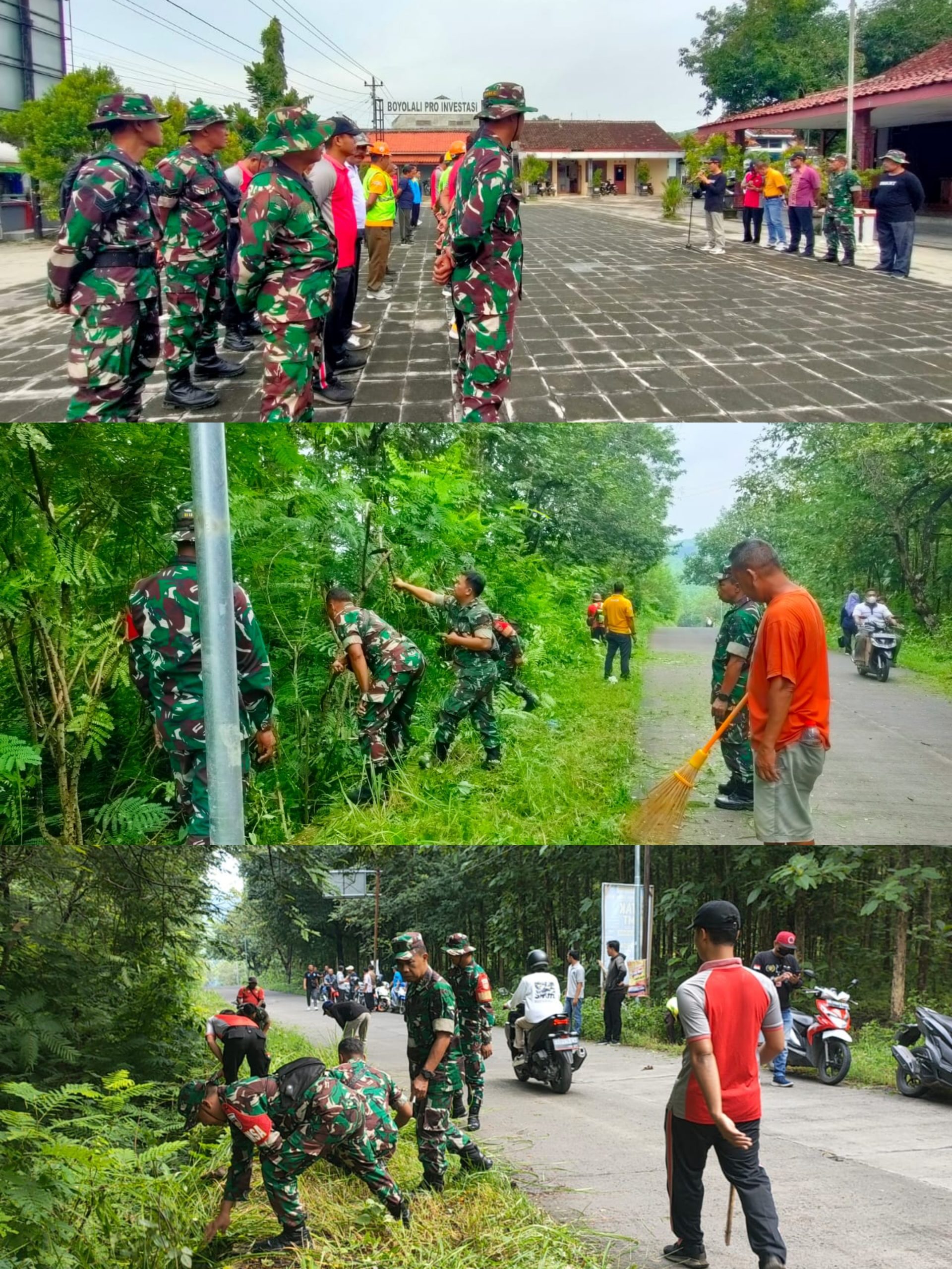 Boyolali – Personel Koramil 19/Juwangi Kodim 0724/Boyolali bersama Forkopimcam dan masyarakat Kecamatan Juwangi melaksanakan kerja bakti massal, Jumat (17/01/2025). Kegiatan ini bertujuan menciptakan lingkungan yang bersih, sehat, dan nyaman, sekaligus memperkuat semangat gotong royong.
