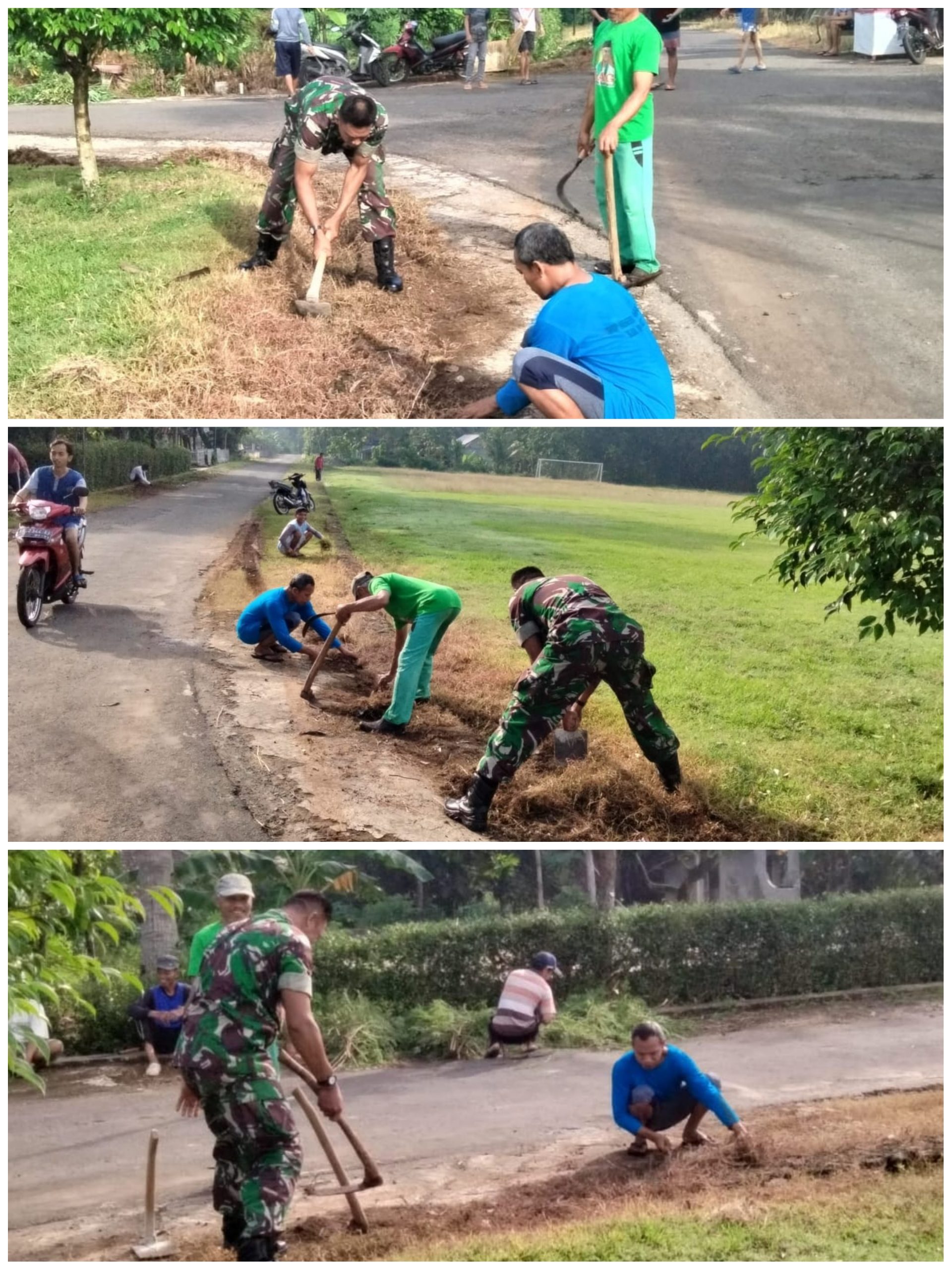 “Jalan ini mulai dipenuhi rumput liar, ditambah ranting pohon yang menutupi pandangan pengendara. Jika dibiarkan, kondisi ini bisa meningkatkan risiko kecelakaan lalu lintas. Karena itu, kerja bakti ini penting dilakukan,” ungkapnya.