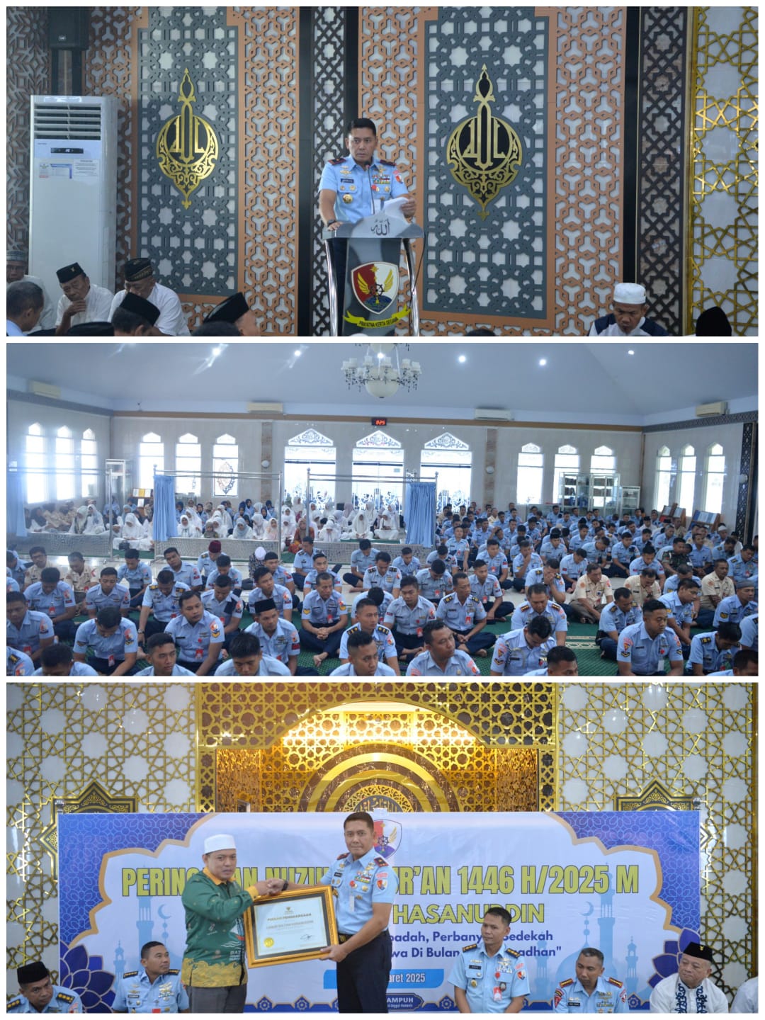 Makassar – Komandan Lanud (Danlanud) Sultan Hasanuddin, Marsma TNI Arifaini Nur Dwiyanto, M.Han., bersama prajurit yang beragama Islam, memperingati Nuzulul Quran 1446 H/2025 M di Masjid Nurussamawat, Lanud Sultan Hasanuddin, Kamis (13/3/2025).