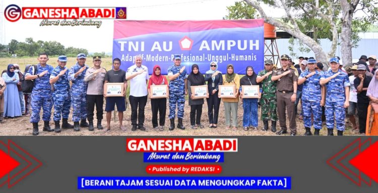 Selain meninjau lahan, Danlanud Sultan Hasanuddin juga menyerahkan bantuan sembako kepada masyarakat sekitar sebagai bagian dari rangkaian kegiatan HUT ke-79 TNI AU.