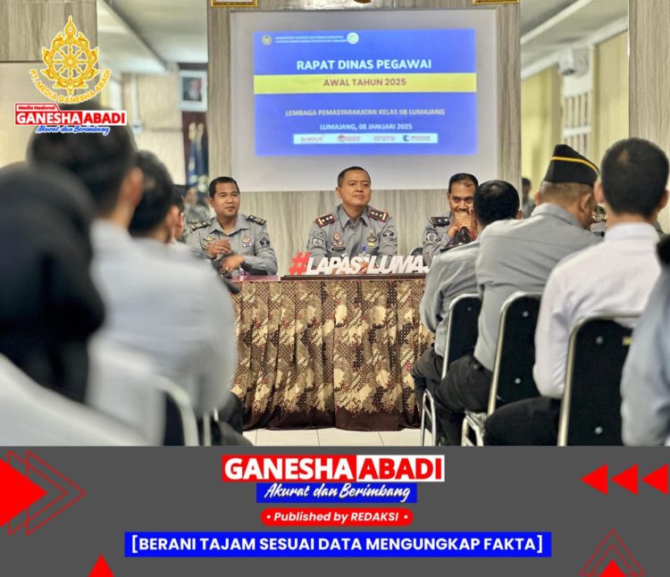 Lumajang – Lapas Kelas IIB Lumajang menggelar rapat dinas perdana pada tahun 2025 yang dipimpin oleh Kepala Lapas (Kalapas) Mahendra Sulaksana. Rapat yang berlangsung di aula Lapas ini dihadiri oleh seluruh staf dan petugas Lapas setempat, dengan fokus utama membahas pencapaian tahun 2024 serta rencana kerja untuk tahun 2025.