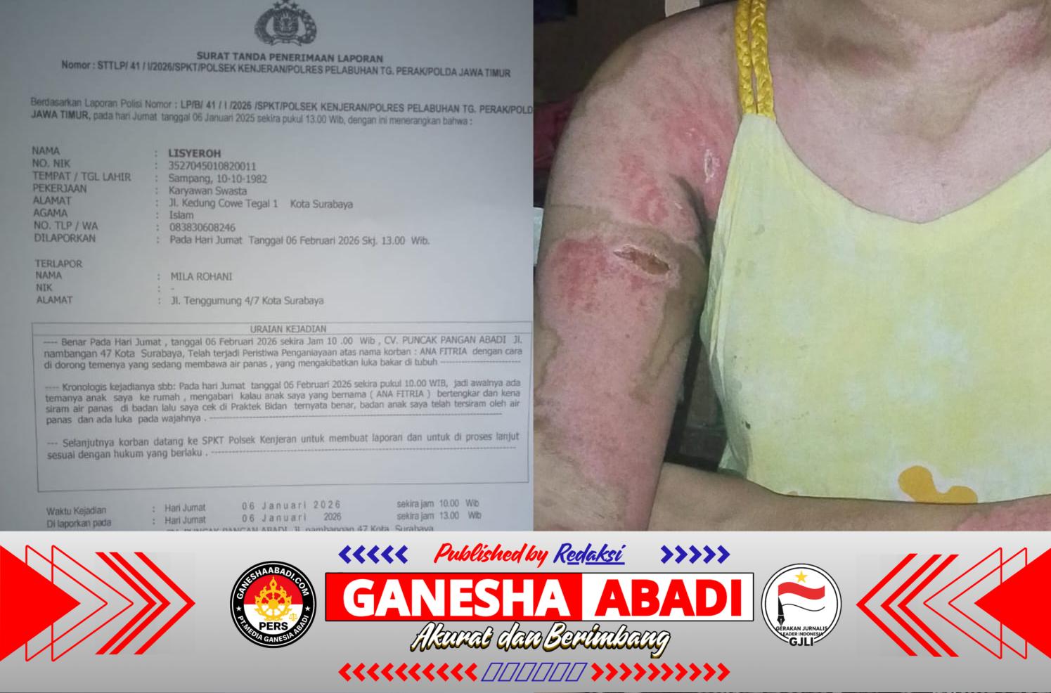 Peristiwa tersebut dilaporkan dengan nomor: LP/B/41/I/2026/SPKT/Polsek Kenjeran/Polres Pelabuhan Tanjung Perak-Polda Jatim, pada Jumat, 6 Januari 2026.