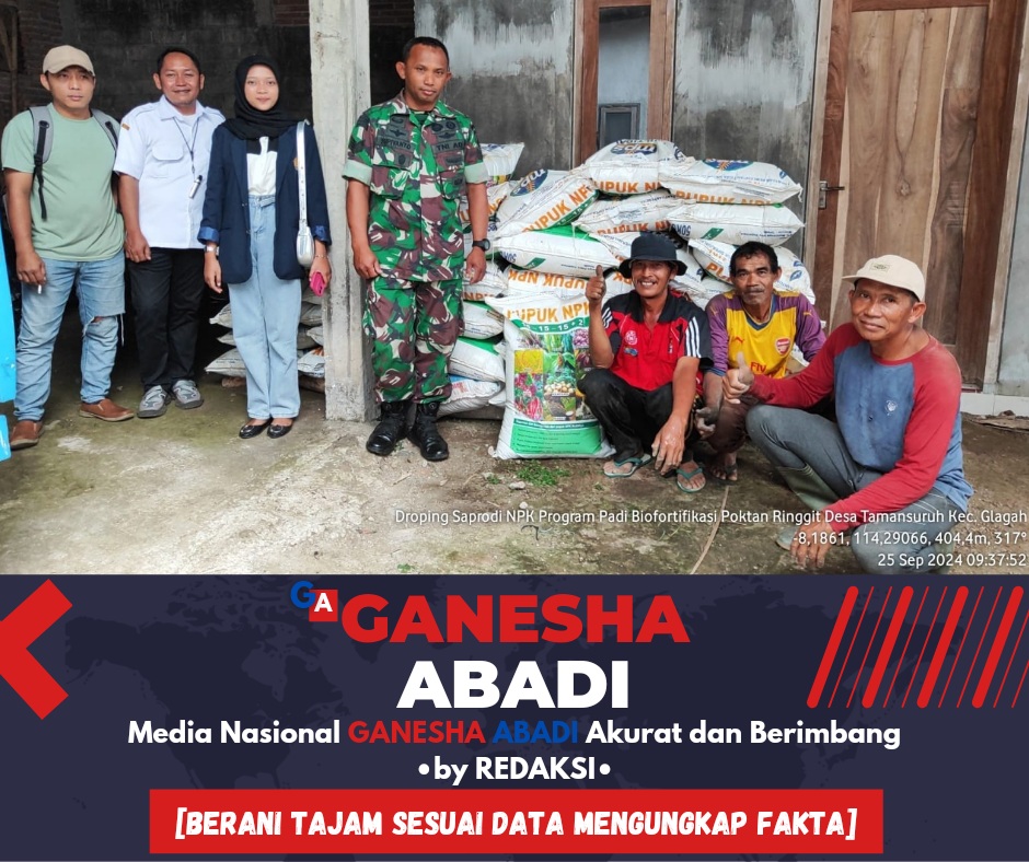 BANYUWANGI – Dinas Pertanian Kabupaten Banyuwangi melaksanakan kegiatan monitoring dan pendampingan penyaluran bantuan pupuk NPK kepada kelompok tani di Desa Tamansuruh, Kecamatan Glagah. Kegiatan ini dihadiri oleh Petugas Penyuluh Pertanian (PPL) Desa Tamansuruh, Bapak Pandu Mahardhika, serta Babinsa Desa Tamansuruh, Serma Supiyanto, dan anggota kelompok tani setempat. Kamis (26/09/2024)