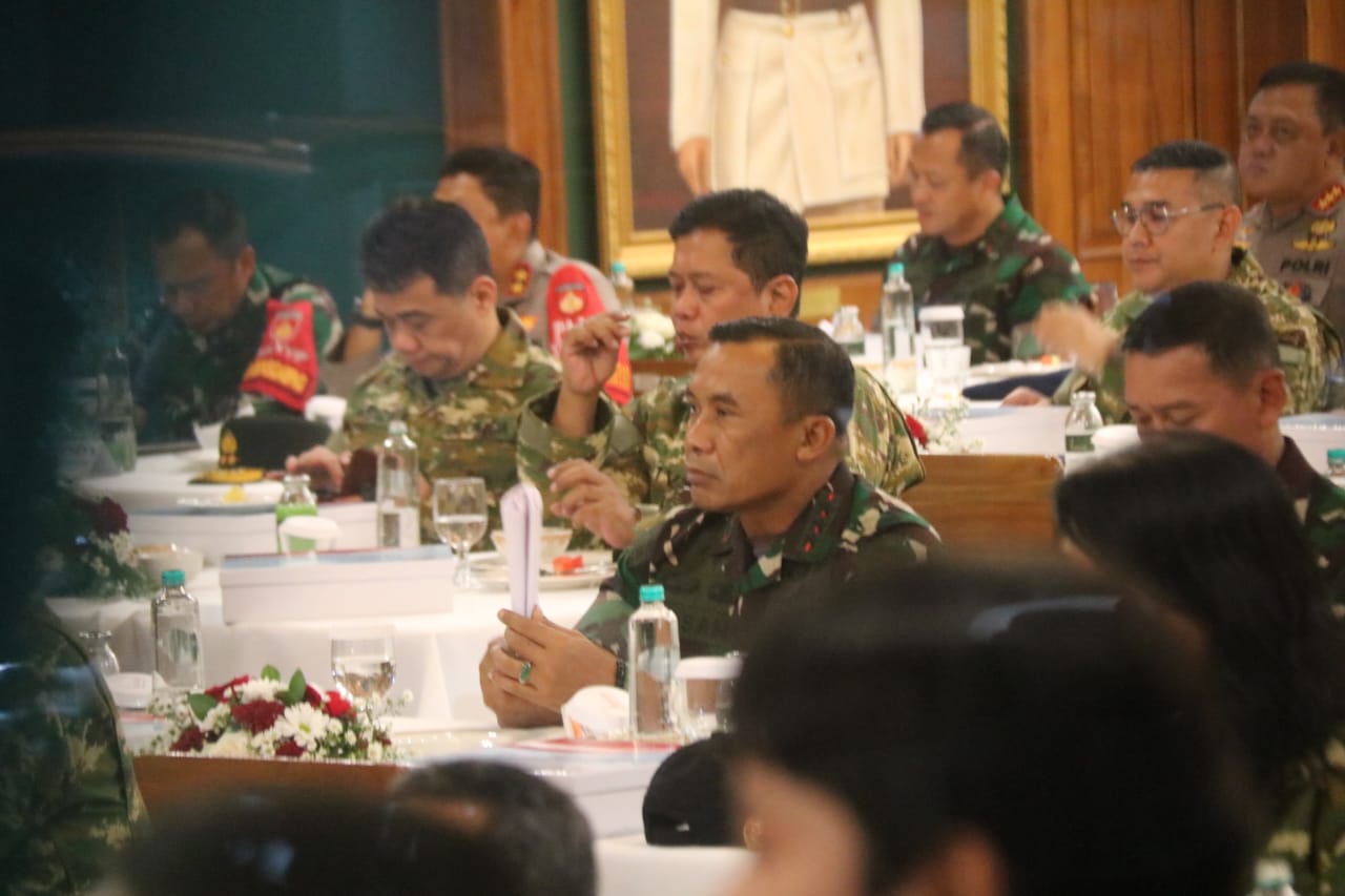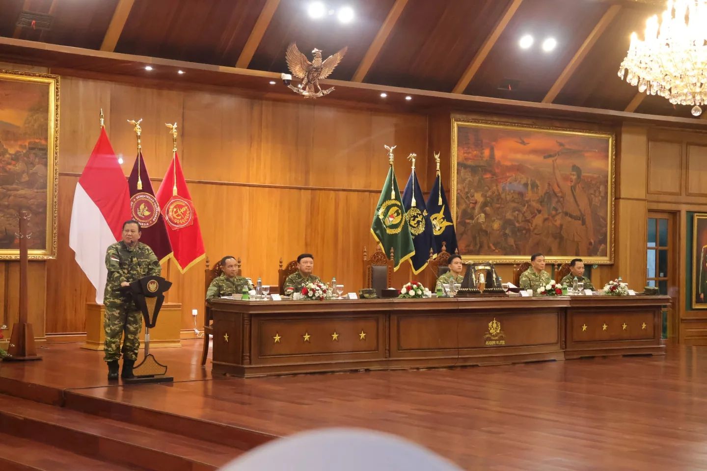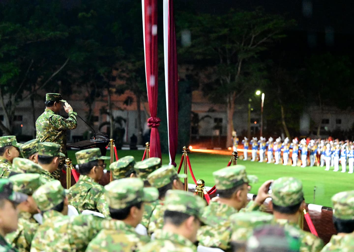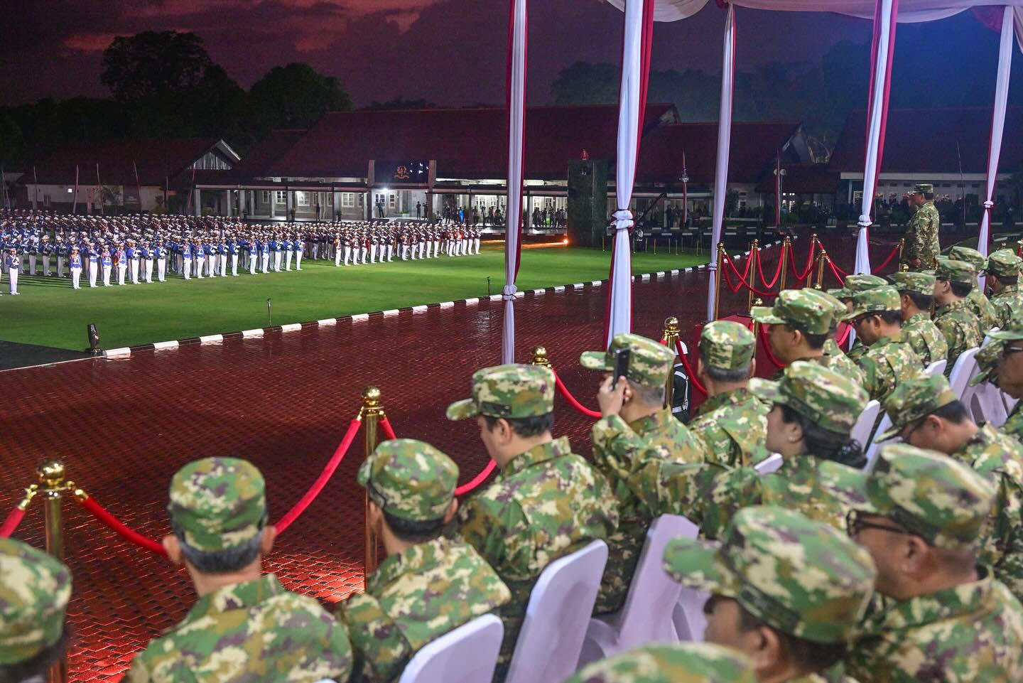 JAKARTA — Panglima Kostrad (Pangkostrad), Letnan Jenderal TNI Mohamad Hasan, menghadiri Upacara Parade Senja Pembekalan Kabinet Merah Putih dan Penurunan bendera Merah Putih yang dipimpin oleh Presiden RI Prabowo Subianto di Lapangan Pancasila, Akademi Militer (Akmil) Magelang. Jumat (25/10/2024).