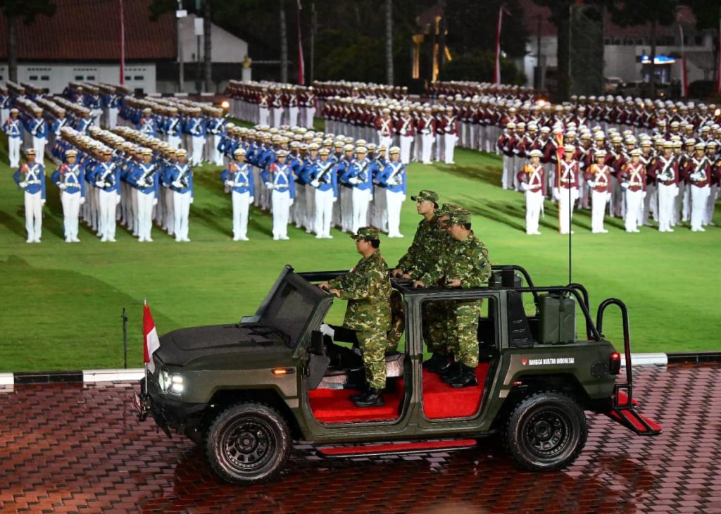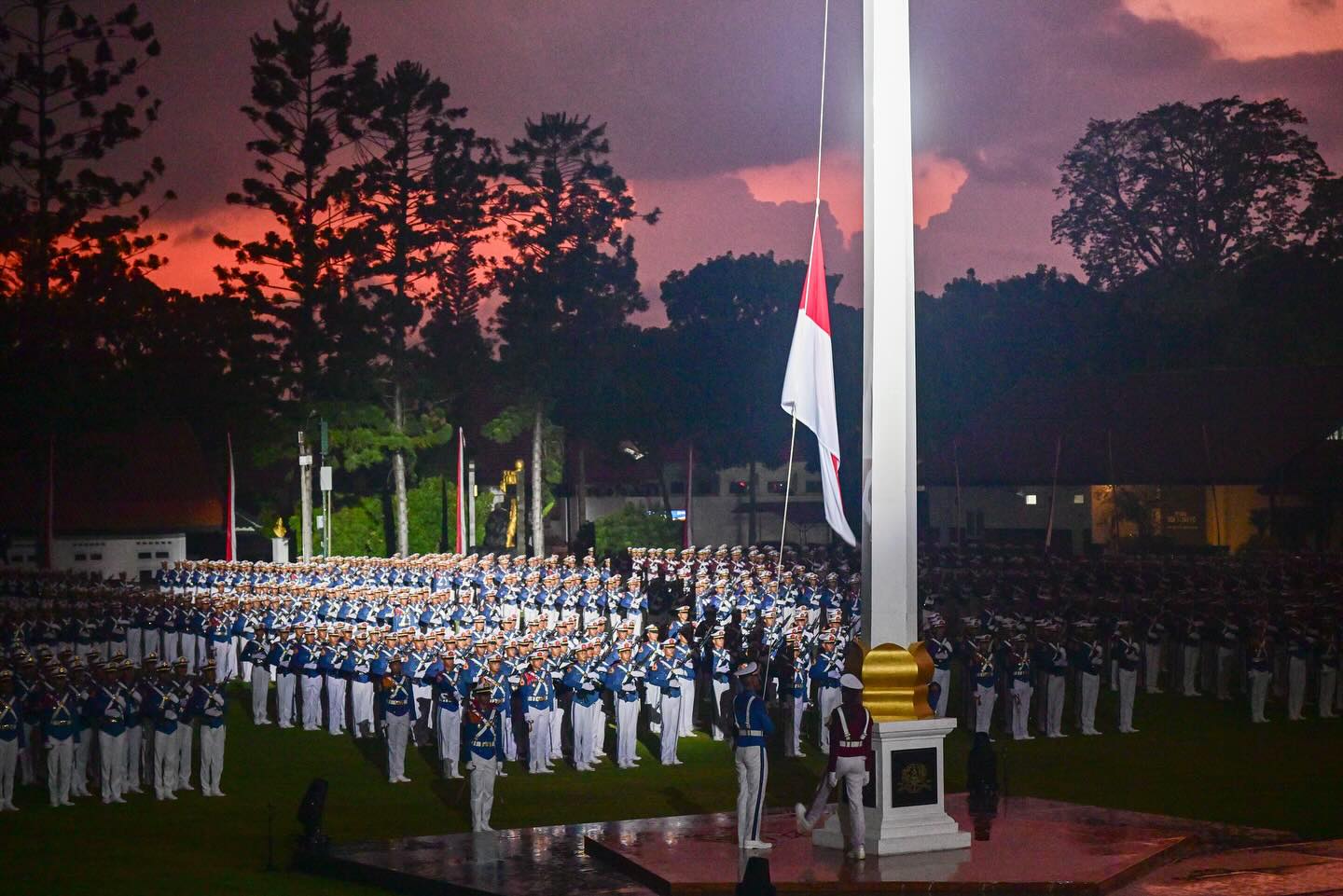 Acara diawali dengan penghormatan dan laporan kepada Presiden RI, dilanjutkan pemeriksaan pasukan oleh Presiden RI didampingi Wapres RI Gibran Rakabuming Raka, Menteri Pertahanan RI Sjafrie Sjamsoeddin, Panglima TNI Jenderal TNI Agus Subiyanto, Kapolri Jenderal Pol Listyo Sigit Prabowo, Kasad Jenderal TNI Maruli Simanjuntak, Kasal Laksamana TNI Dr. Muhammad Ali , Kasau Marsekal TNI Mohamad Tonny Harjono. Selanjutnya acara dilanjutkan mengheningkan cipta, penurunan Bendera Merah Putih sekaligus menghadiri acara Gala Diner di Ruang makan Husein Akmil.