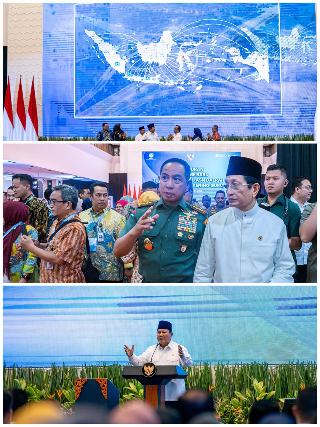 Jakarta – Panglima TNI Jenderal TNI Agus Subiyanto mendampingi Presiden RI Prabowo Subianto dalam acara peluncuran mekanisme baru penyaluran tunjangan guru Aparatur Sipil Negara (ASN) daerah. Acara ini berlangsung di Kantor Kementerian Pendidikan Dasar dan Menengah (Kemendikdasmen), Jakarta, Kamis (13/3/2025).
