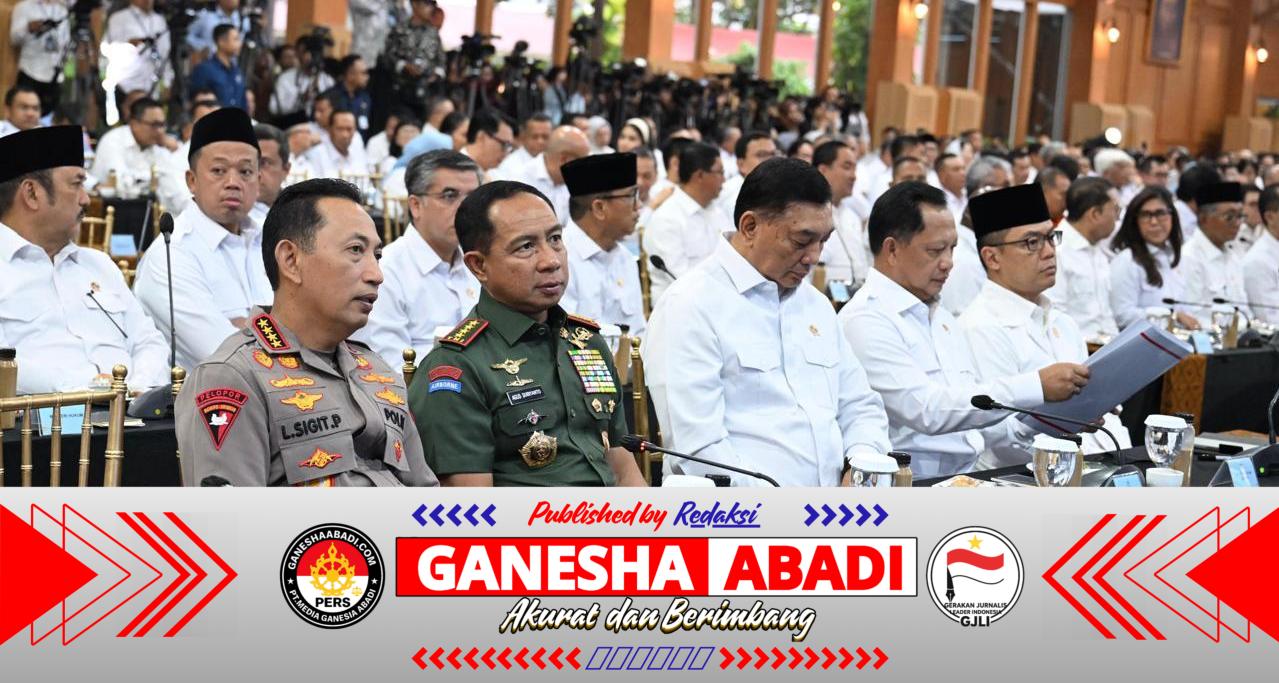 Jakarta, 9 April 2026 Puspen TNI). Panglima TNI Jenderal TNI Agus Subiyanto menghadiri Rapat Kerja Pemerintah yang dipimpin langsung oleh Presiden RI Prabowo Subianto bersama anggota Kabinet Merah Putih, Pejabat Eselon I Kementerian/Lembaga, serta Direktur Utama BUMN, bertempat di Kompleks Istana Kepresidenan Jakarta, Rabu (8/4/2026).