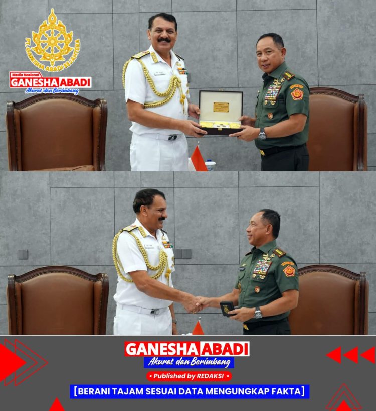 Jakarta – Panglima TNI Jenderal TNI Agus Subiyanto menerima kunjungan kehormatan Kepala Staf Angkatan Laut (Kasal) India, Laksamana Dinesh Kumar Tripathi, PSVM., AVSM., NM., di Kantor Subden Merdeka Barat, Jakarta Pusat, Senin (16/12/2024).