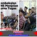 “Tengok ke saya, lihat mata saya sambil kamu tengok kelurusan ya,” ucap Panglima TNI saat mengajarkan cara menjaga kekompakan barisan.