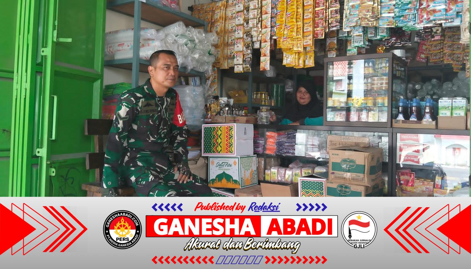 Surakarta, Dalam rangka memastikan ketersediaan bahan kebutuhan pokok tetap aman dan harga tetap stabil Babinsa Serengan Koramil 03/Serengan Kodim 0735/Surakarta Serda Djoko Riyadi melaksanakan pemantauan dan Cek langsung Toko Plastik dan Bahan Kue milik Ibu Hutami di Jln. Yos Sudarso kelurahan Serengan Kecamatan Serengan Kota Surakarta, Kamis pukul 10.00 Wib (09/04/2026).