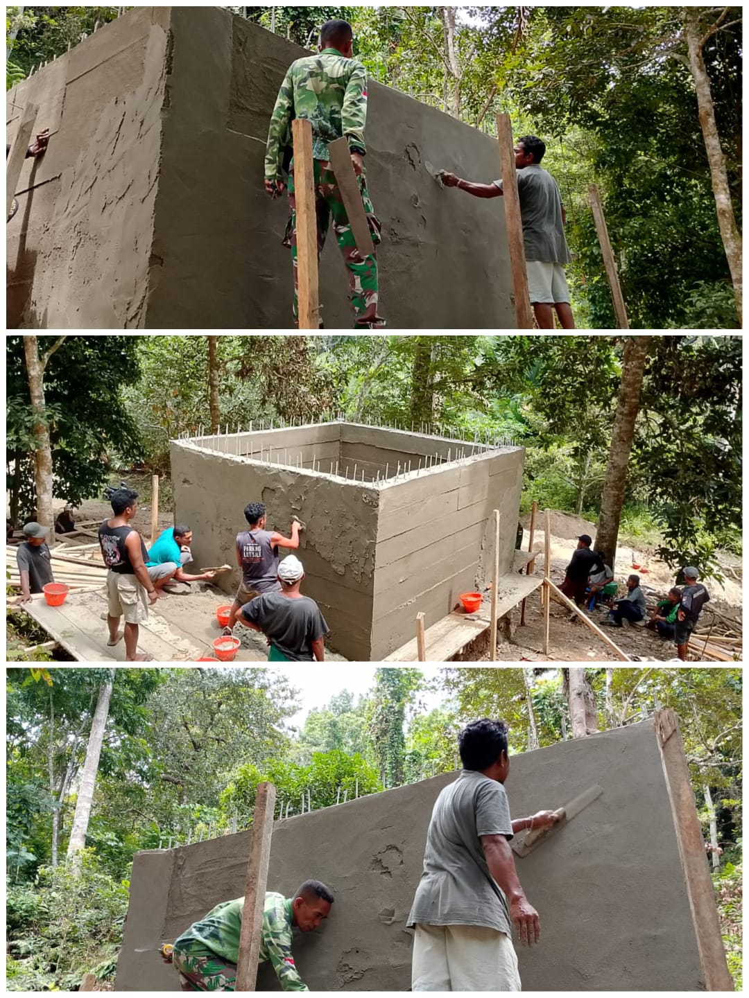 Serda Remon Kastilong, anggota yang terlibat dalam proyek ini, mengungkapkan bahwa pembangunan pondasi bak air telah selesai dan saat ini memasuki tahap plester. “Pembangunan pondasi sudah rampung dan kini dalam tahap plester. Keberadaan bak air ini akan sangat membantu warga dalam mendapatkan akses air bersih yang lebih baik,” ujarnya.