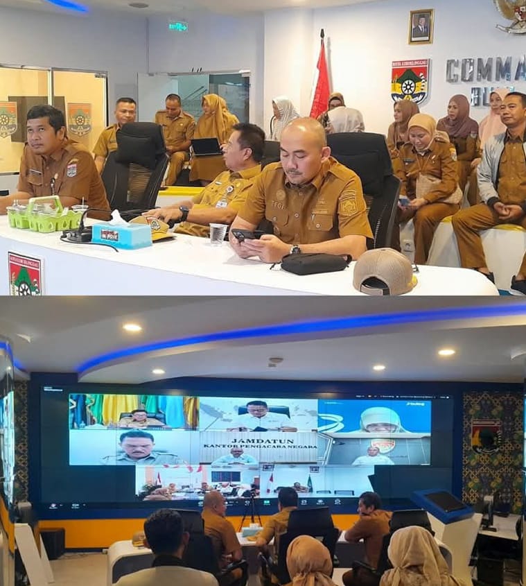 Lubuklinggau – Asisten II Bidang Ekonomi dan Pembangunan, H. Surya Darma, mengikuti rapat koordinasi (rakor) pengendalian inflasi yang digelar oleh Kementerian Dalam Negeri (Kemendagri) melalui Zoom Meeting di Command Center Pemkot Lubuk Linggau, Senin (24/2/2025).