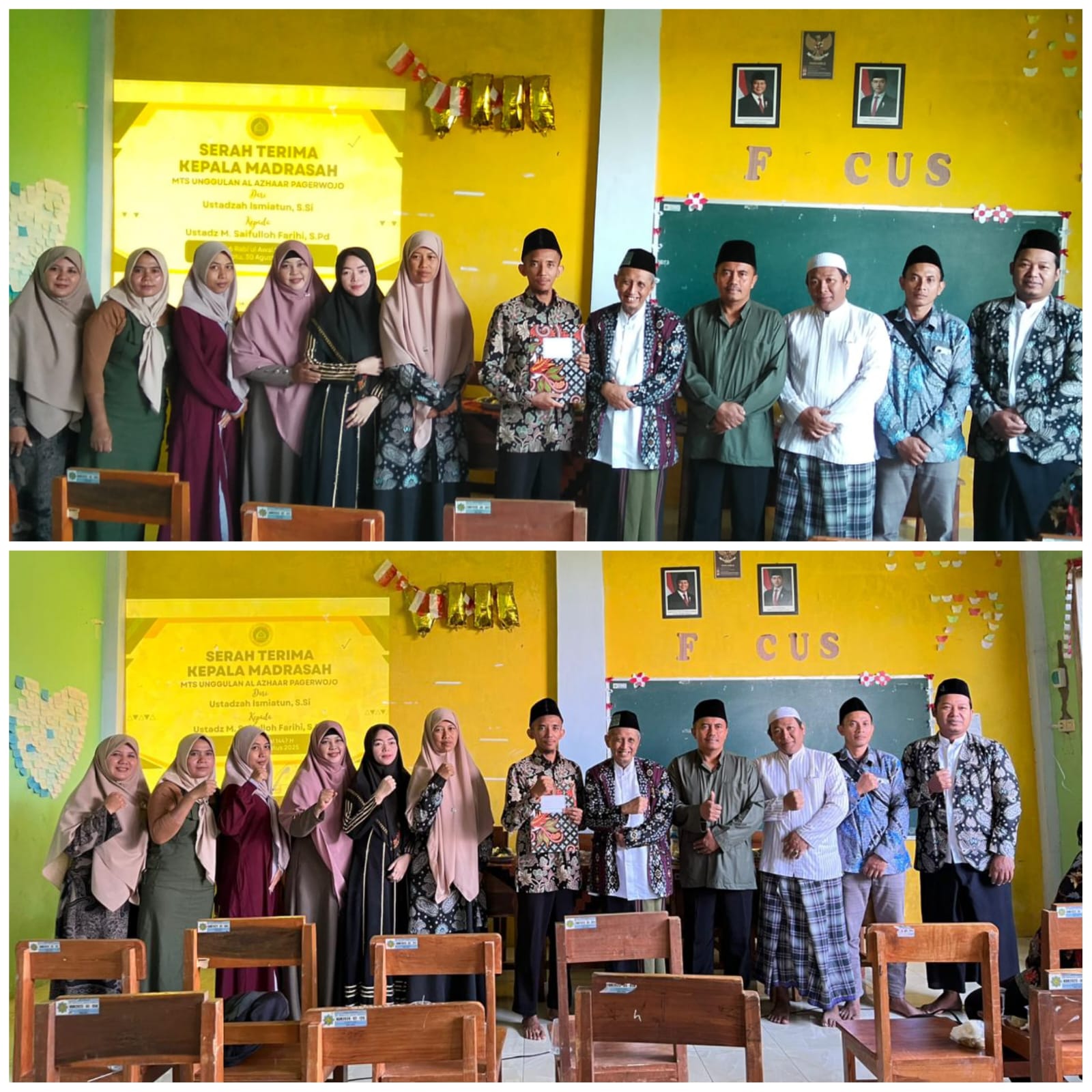 Meski tanpa tepuk tangan meriah, suasana acara dipenuhi getaran keikhlasan dan semangat kebersamaan. Serah terima jabatan ini bukan sekadar pergantian pemimpin, melainkan peralihan ruh perjuangan dan amanah untuk terus membawa MTs Unggulan Al Azhaar Pagerwojo menjadi madrasah yang penuh berkah.
