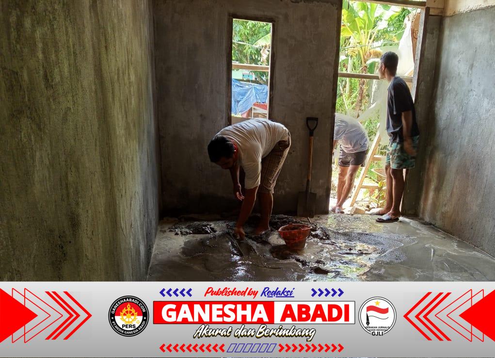 Personel TMMD Ke-127 Kodim 1514/Morotai Lanjutkan Pekerjaan Flur Lantai dan Pemasangan Lisplang RTLH