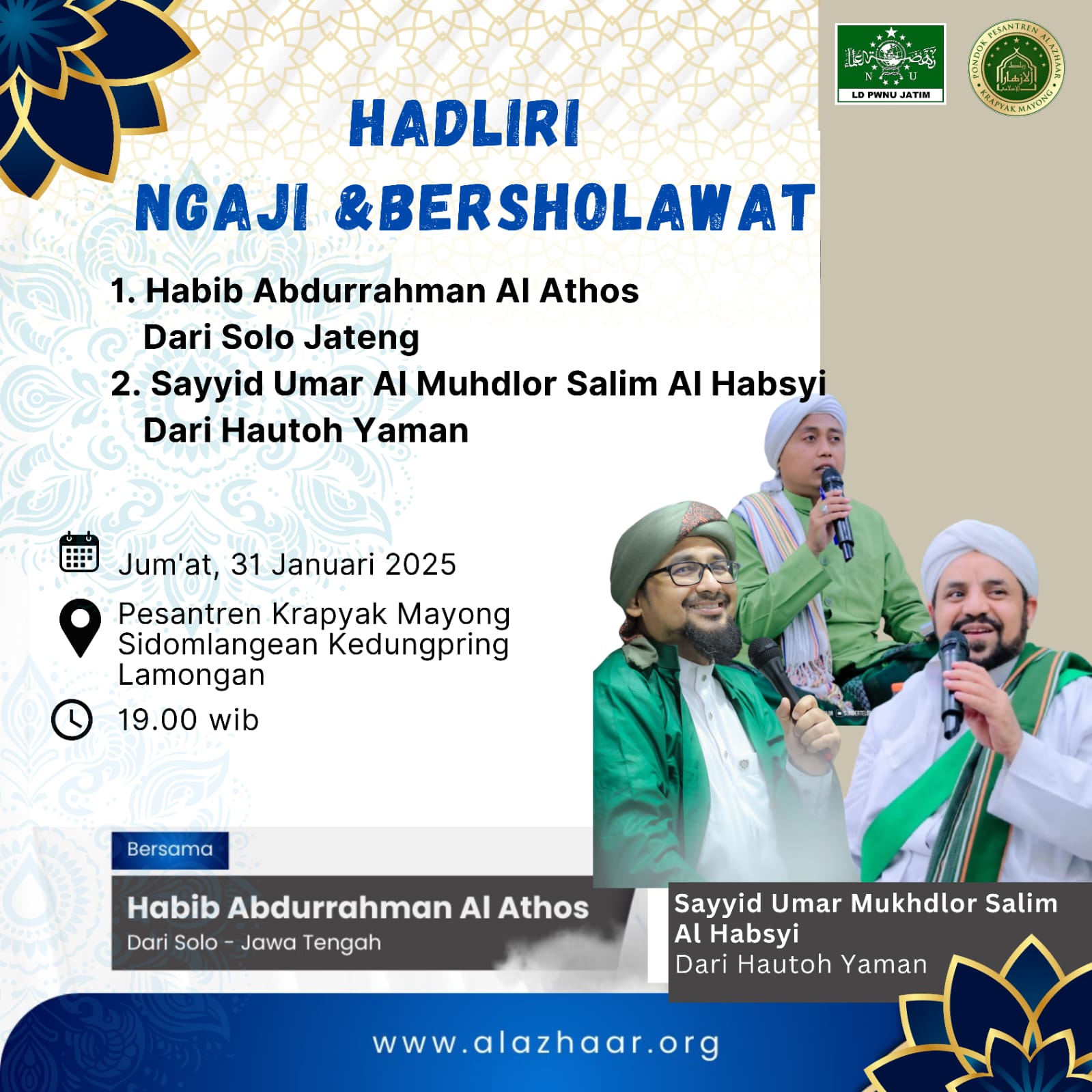 “Pesantren Krapyak Mayong Sidomlangean Kedungpring Lamongan menyediakan wadah ngaji dan bersholawat untuk semua jama’ah. Semoga kaum muslimin diberi kemudahan untuk hadir,” harap Katjung.