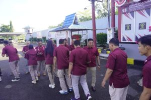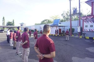 Pelaksanaan apel pagi petugas Lapas Narkotika Karang Intan berlangsung khidmat hingga akhir kegiatan, dan ditutup dengan bersalaman seluruh petugas Lapas.