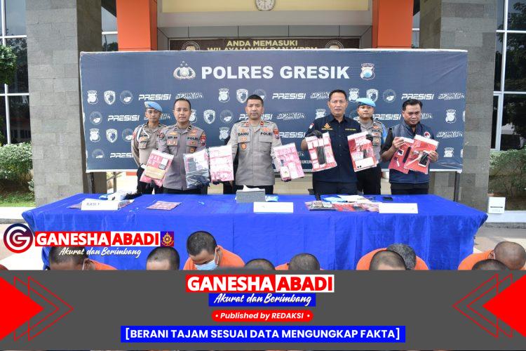 Konferensi pers dipimpin Wakapolres Gresik Kompol Danu Anindhito Kuncoro, didampingi Kasat Resnarkoba AKP Ahmad Yani dan Kasi Humas Ipda Hepi Muslih Riza, Selasa (16/9/2025).