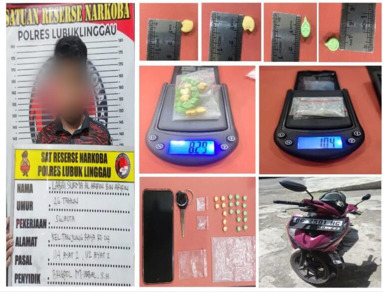 Lubuklinggau, Sumsel – Satres Narkoba Polres Lubuk Linggau berhasil menangkap seorang pengedar narkoba bernama Labay Sukmaal, dengan barang bukti puluhan butir ekstasi dan paket sabu siap edar. Penangkapan dilakukan pada Sabtu, 4 Mei 2025, di Jalan A. Yani, Kelurahan Jogoboyo, Kecamatan Lubuk Linggau Utara II.