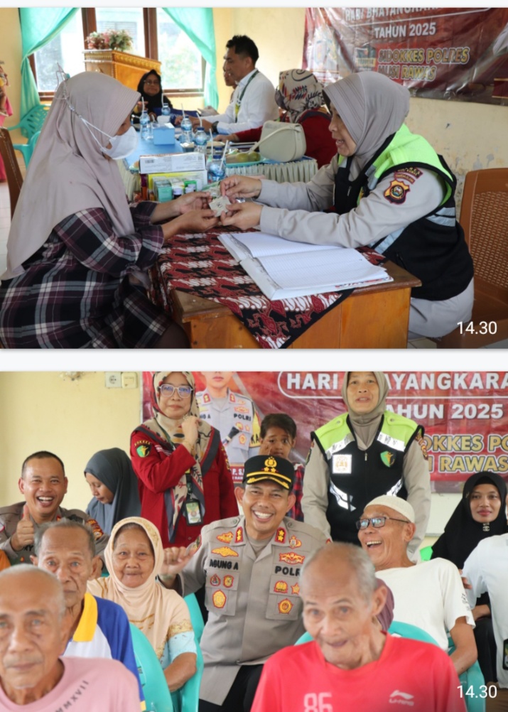 Musi Rawas – Menyambut Hari Bhayangkara ke-79, Polres Musi Rawas (Mura) menggelar kegiatan “Bakti Kesehatan Pengobatan Gratis” di UPTD Panti Sosial Lanjut Usia Harapan Kita, Dusun I, Desa G1 Mataram, Kecamatan Tugumulyo, Kabupaten Musi Rawas, Rabu (11/6/2025).