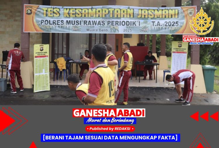 Musi Rawas, 7 Februari 2025 – Polres Musi Rawas (Mura) menggelar Tes Kesamaptaan Jasmani (TKJ) Periodik I Tahun 2025 di lapangan belakang Mapolres Mura, Pusat Perkantoran Agropolitan Center Pemkab Musi Rawas. Kegiatan ini bertujuan untuk mengukur kemampuan fisik personel sekaligus sebagai syarat kenaikan pangkat, latihan, dan pendidikan di institusi Polri.