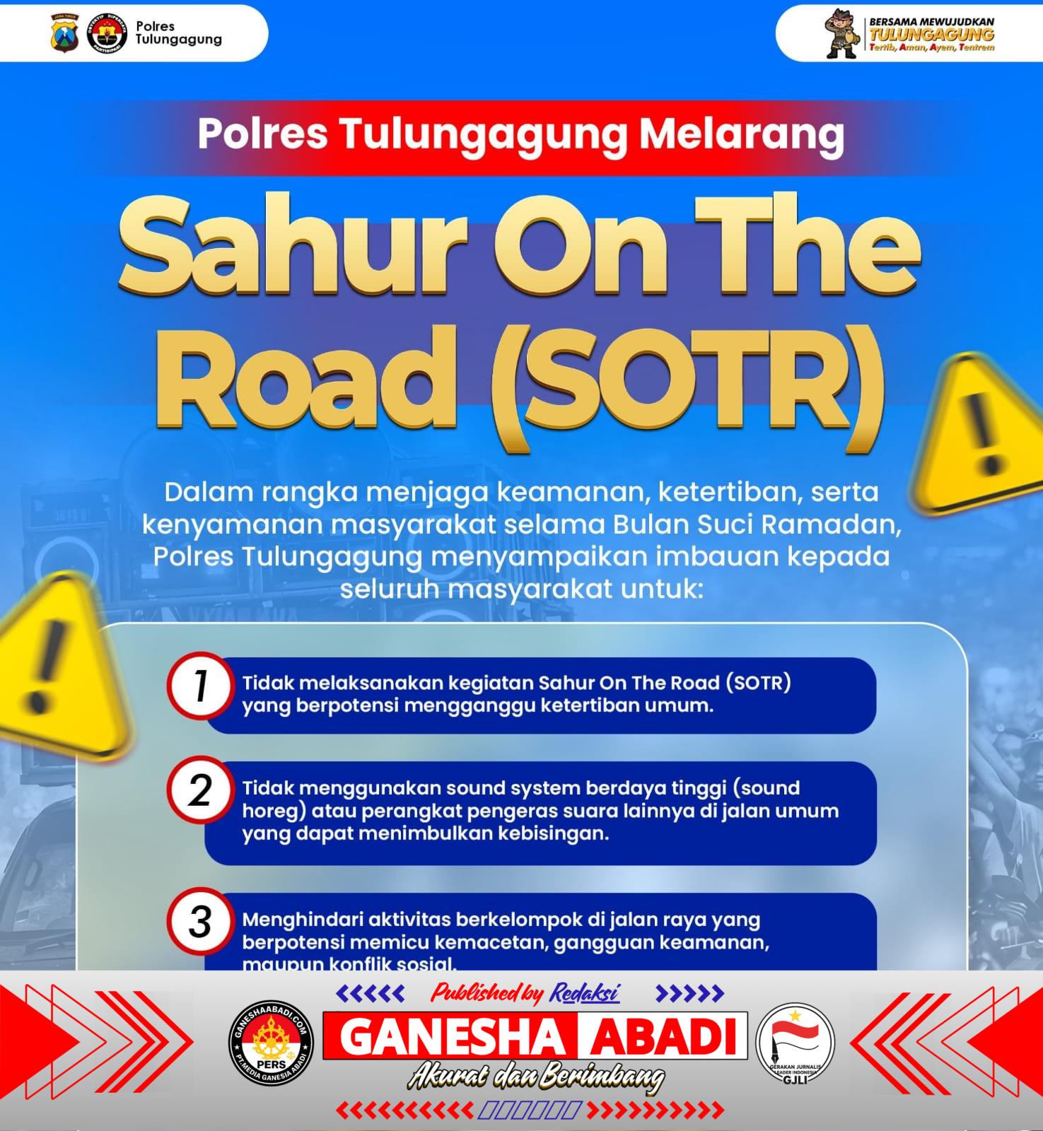 TULUNGAGUNG – Polres Tulungagung Polda Jawa Timur (Jatim) secara tegas melarang kegiatan sahur on the road (SOTR) terlebih dengan menggunakan sound horeg.