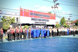 Kapolresta Banyuwangi, Kombes Pol Nanang Haryono, S.H., S.I.K., M.Si dalam sambutannya yang diwakili oleh Wakapolresta Banyuwangi AKBP Dewa Putu Eka Darmawan menyampaikan apresiasi yang tinggi kepada seluruh anggota yang telah bekerja keras menjaga keamanan dan ketertiban di wilayah Banyuwangi.