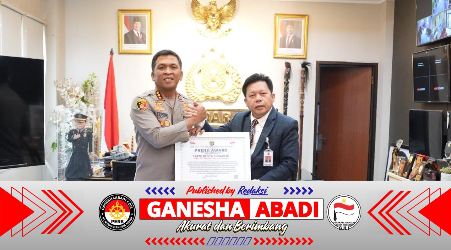Penghargaan Presisi Award tersebut diberikan Direktur Eksekutif Lemkapi Dr. Edi Saputra Hasibuan kepada Kapolresta Sidoarjo Kombes. Pol. Dr. Christian Tobing di Mako Polresta Sidoarjo pada Rabu (18/2/26) yang lalu.