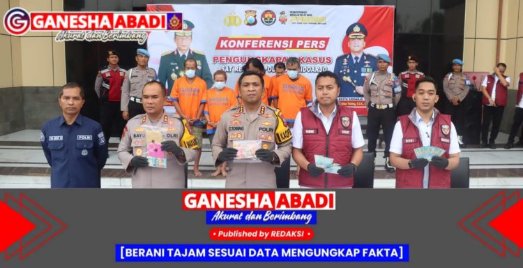 Sidoarjo – Polresta Sidoarjo berhasil mengungkap peredaran uang palsu di wilayah hukumnya. Empat orang pelaku, yakni S dan AY asal Bangil, Pasuruan, serta SBU asal Tanggulangin dan TC asal Pandaan, Pasuruan, berhasil diamankan oleh pihak kepolisian.