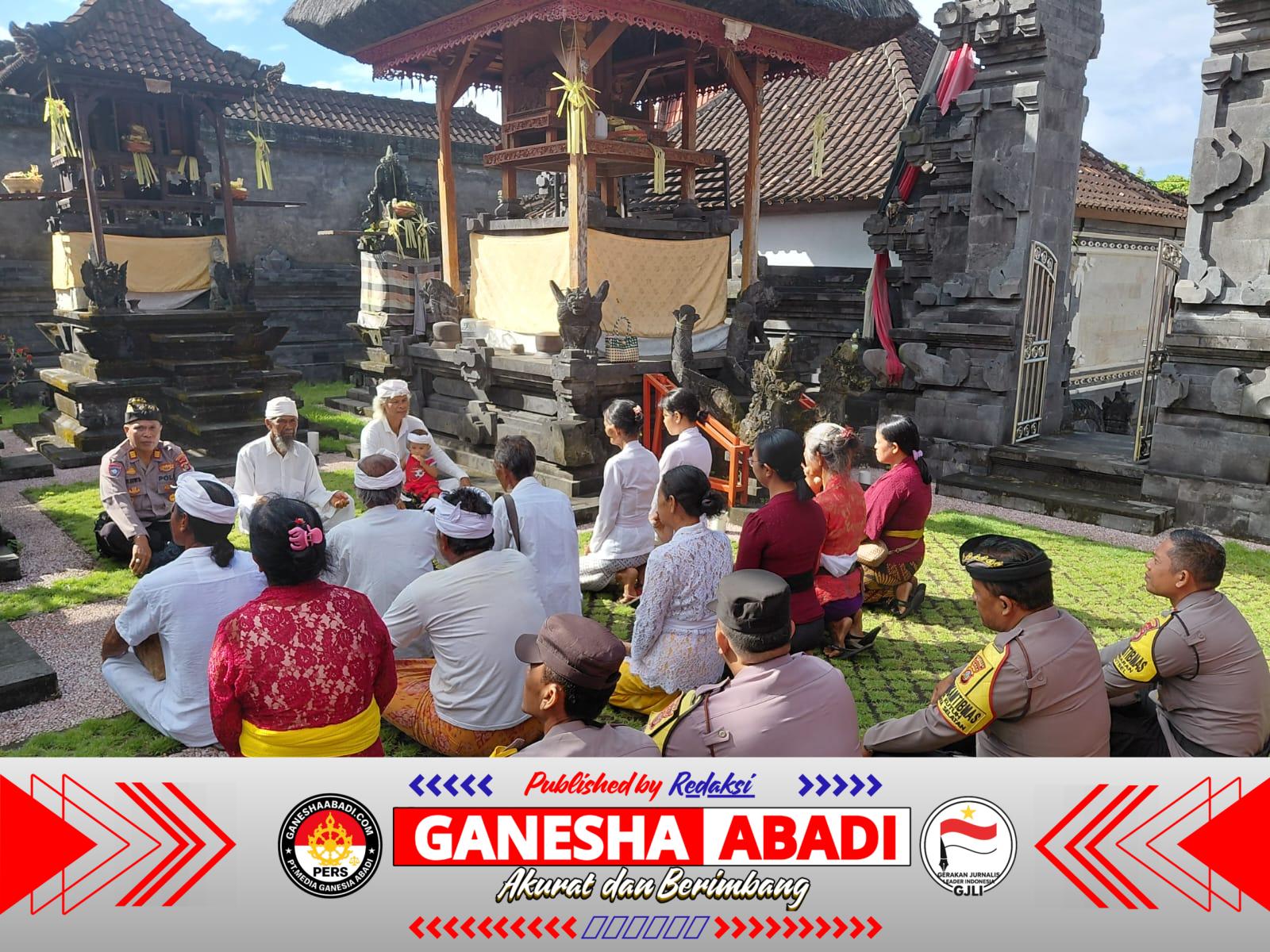 Kegiatan yang berlangsung sejak pukul 08.45 WITA itu tidak sekadar seremoni, melainkan forum dialog terbuka antara aparat kepolisian dengan tokoh adat dan warga. Hadir dalam kesempatan tersebut Kanit Binmas, Bhabinkamtibmas Desa Kutuh, pemangku setempat, serta krama Paibon Pande yang menyambut penuh kekeluargaan.