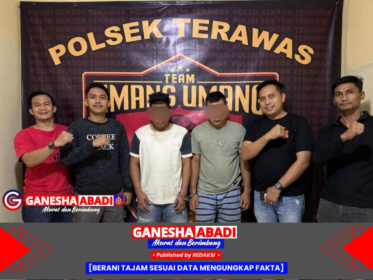 Setelah menerima laporan pada Minggu (11/5/2025), dengan LP/B/9/V/2025/SPKT/POLSEK STL ULU TERAWAS, tim Reskrim Polsek langsung melakukan penyelidikan. Upaya ini membuahkan hasil saat dua pelaku, Reza Pahlevi (30) dan Tatang Irawan (32), berhasil diringkus di Dusun IV, Desa Babat, pada Minggu malam sekitar pukul 19.00 WIB.