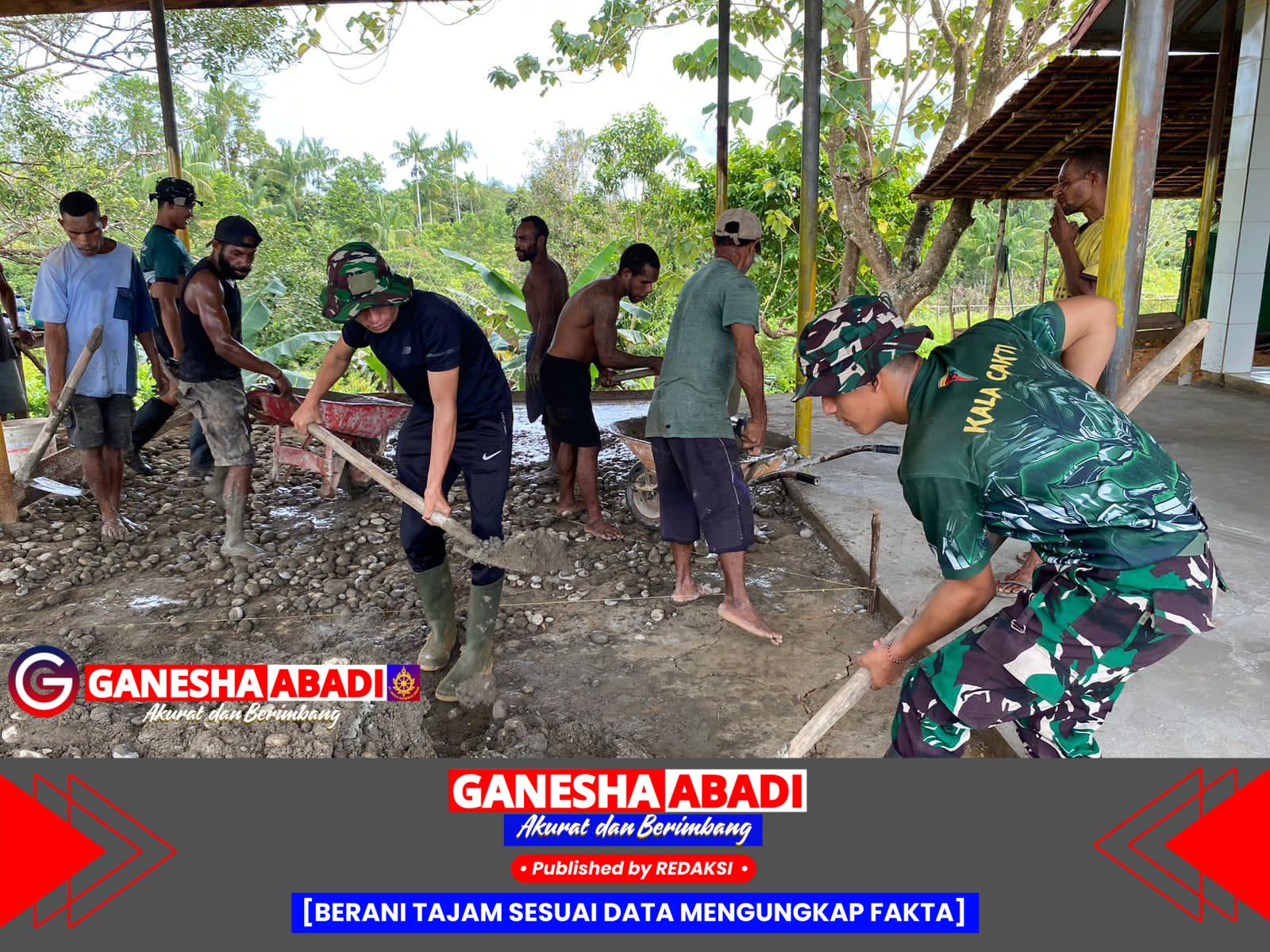 Boven Diogel – Personel Satgas Pamtas RI-PNG Yonif 126/Kala Cakti Pos Ninati menunjukkan komitmennya dalam mendukung kehidupan sosial dan keagamaan masyarakat perbatasan dengan membantu renovasi lantai Gereja Kristus Raja di Kampung Ninati, Distrik Ninati, Kabupaten Boven Digoel, Papua.