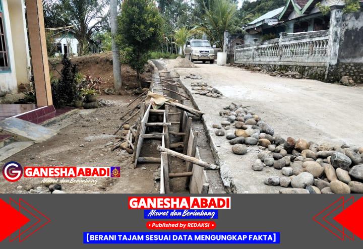 Tak hanya itu, pengerjaan drainase juga disinyalir asal-asalan. Pemadatan batu tidak merata, dinding drainase terlihat menipis, bahkan cetakan (papan mal) yang digunakan seadanya. Lebih parah lagi, bangunan drainase justru menumpang di atas cor lama milik warga yang sudah ada sebelumnya.