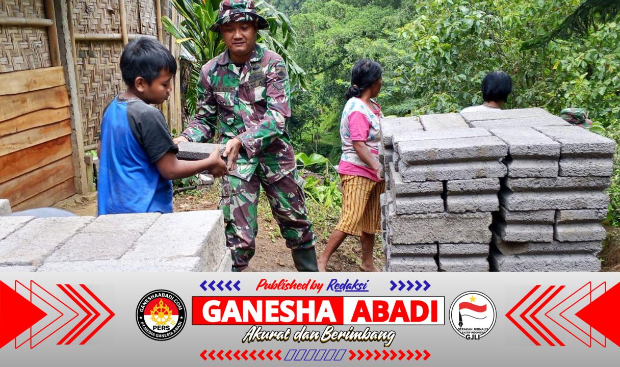 Kehadirannya pun menjadi penyemangat tersendiri bagi anggota satgas yang tengah melaksanakan pembangunan rumah tidak layak huni (RTLH) milik orang tuanya. Sabtu (28/2/2026).