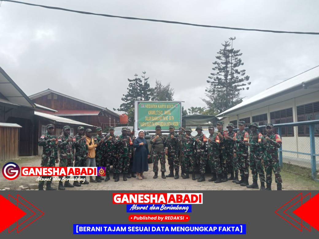 Pegunungan Bintang – Menyambut HUT ke-80 TNI, Babinsa Koramil 1715-01/Oksibil Kodim 1715/Yahukimo melaksanakan karya bakti di Kesusteran (GH) dan Gereja Gidi Kampung Ngutok, Jalan Poros Kabiding, Distrik Oksibil, Kabupaten Pegunungan Bintang, Papua Pegunungan, Sabtu (27/9/2025).