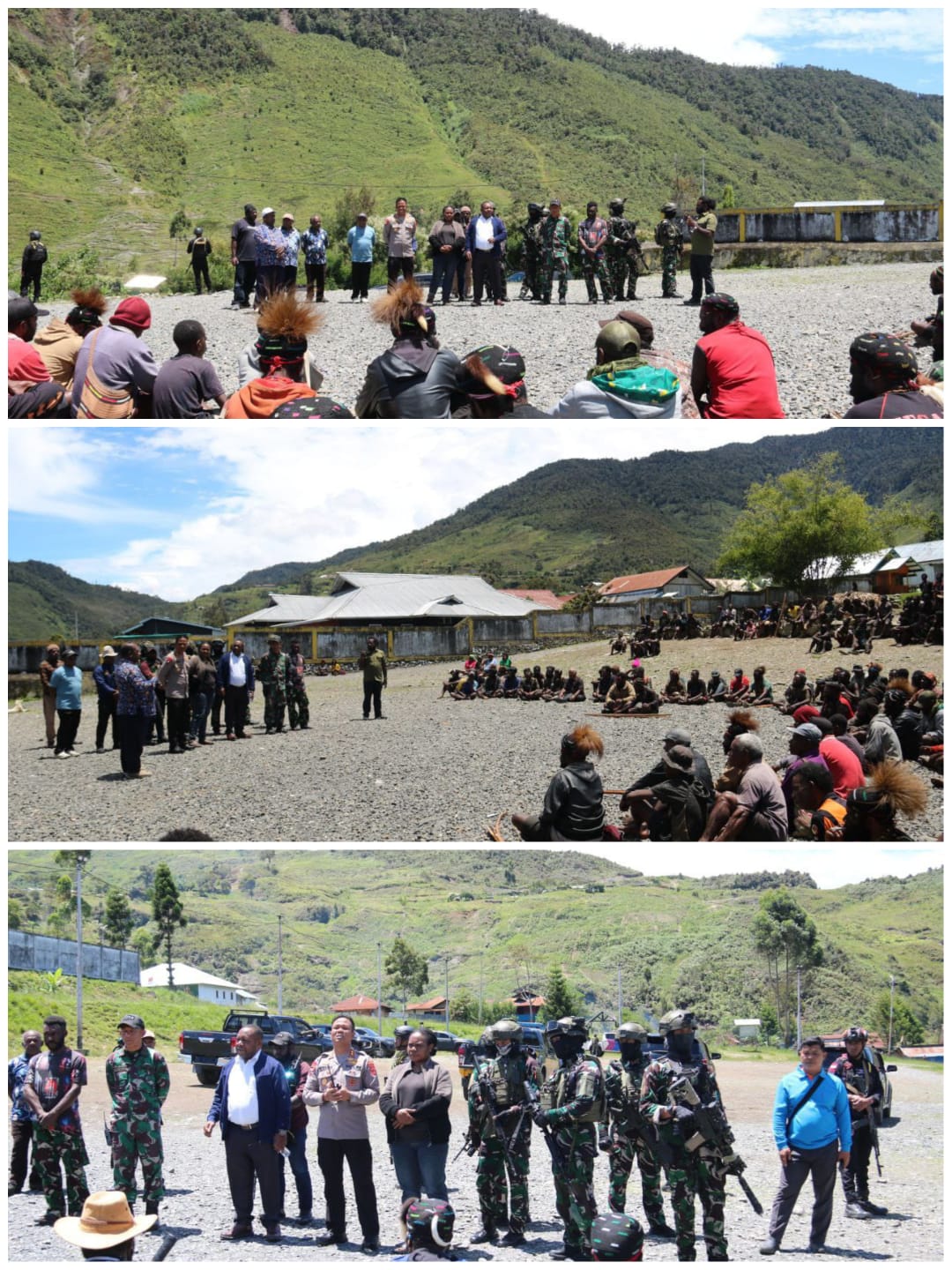 Pj Bupati Puncak Jaya, Yopi Morib, S.E., M.M., menyampaikan bahwa penyelesaian adat akan dilaksanakan pada hari Senin melalui upacara adat guna mempercepat perdamaian.
