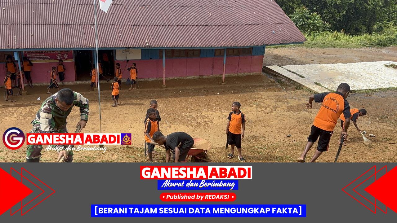 Rangkaian kegiatan difokuskan pada pembersihan lingkungan sekolah dengan melibatkan partisipasi aktif guru, siswa, dan prajurit TNI. Suasana gotong royong terasa kental, menghadirkan semangat kebersamaan yang harmonis di tengah keterbatasan sarana pendidikan.