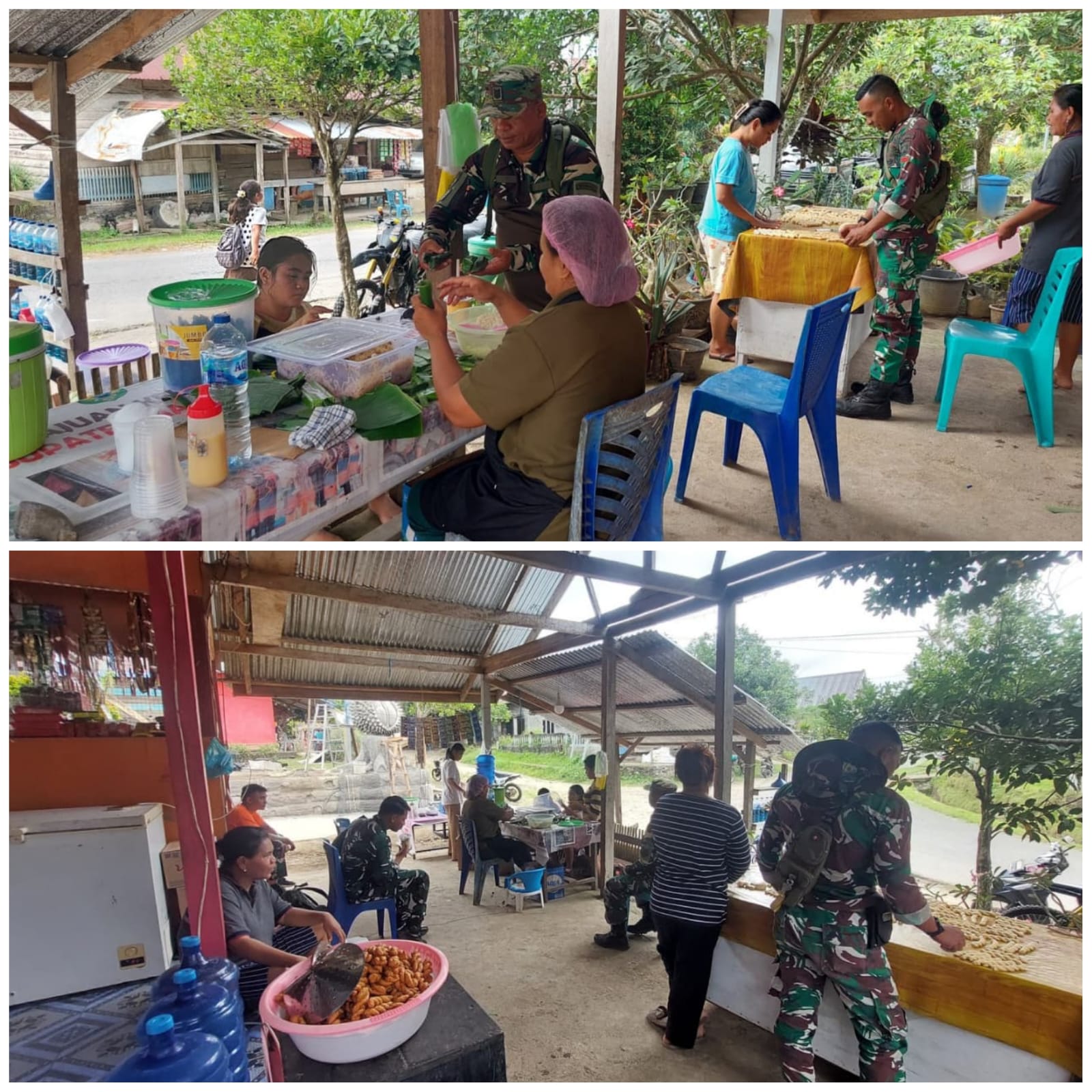 Di sela kegiatan, para anggota Satgas memanfaatkan waktu untuk berinteraksi, saling bercerita, dan bercanda bersama warga. Serma Antonius bahkan membantu warga yang sedang membuat kue di rumah mereka.