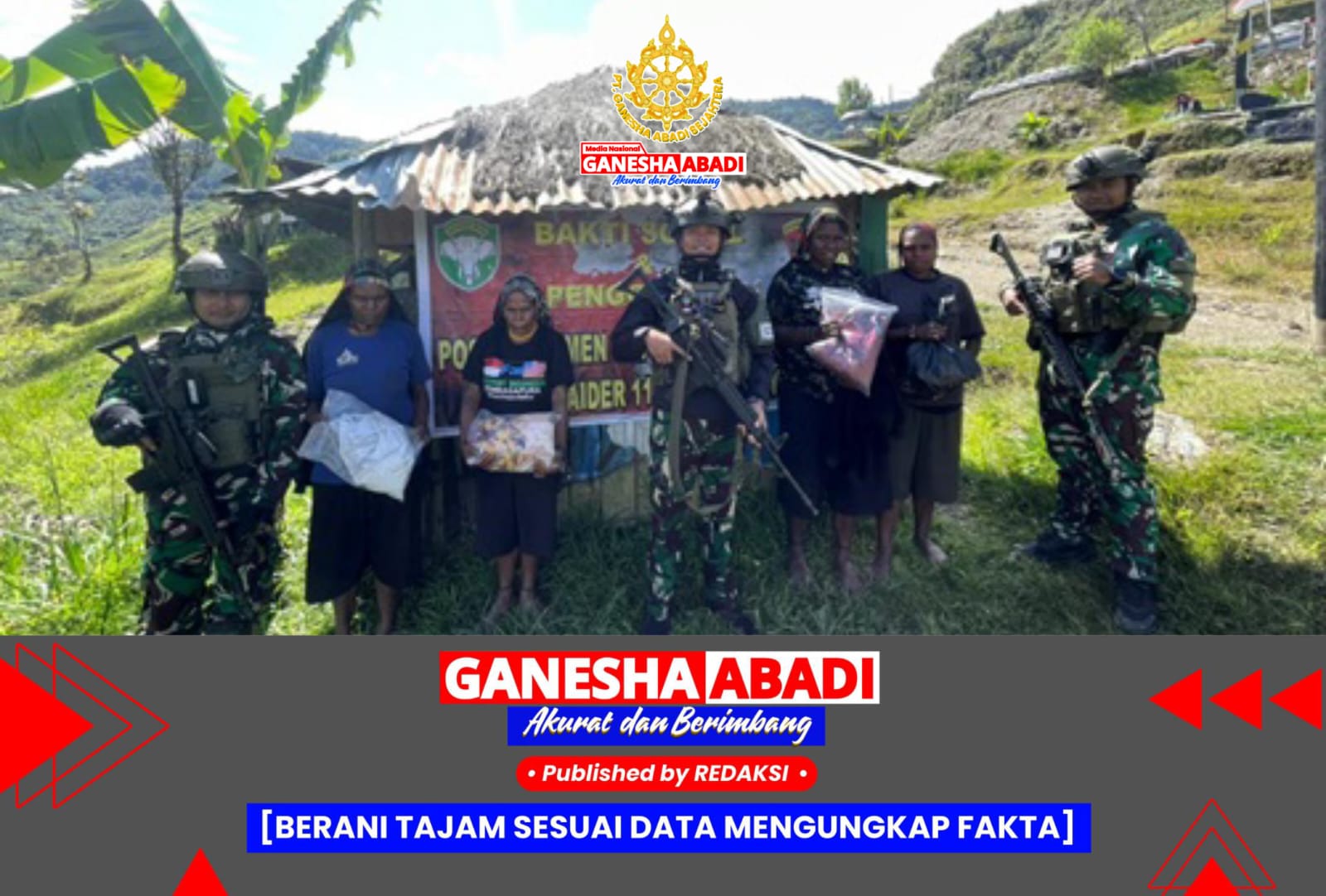 Puncak Jaya – Satgas Yonif 112/DJ menunjukkan kepeduliannya terhadap masyarakat dengan membagikan paket sembako dan pakaian layak pakai kepada warga Kampung Wandenggobak, Distrik Kalisemen, Kabupaten Puncak Jaya, Papua, pada Jumat (14/2/2025).