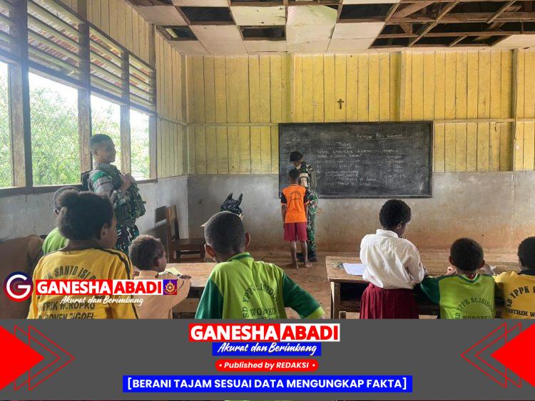 Boven Digoel – Satgas Yonif 126/Kalacakti Pos Kalikao menunjukkan kepeduliannya terhadap dunia pendidikan dengan mengajar langsung di SD YPPK Santo Sidorus Waropko, Distrik Waropko, Kabupaten Boven Digoel, Papua Selatan, Selasa (19/8/2025).