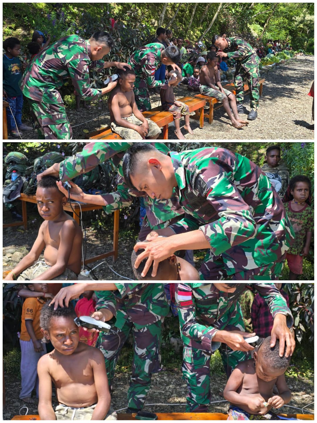 Satgas Yonif 715/Mtl Gelar Layanan Cukur Rambut dan Gunting Kuku Gratis di Puncak Jaya