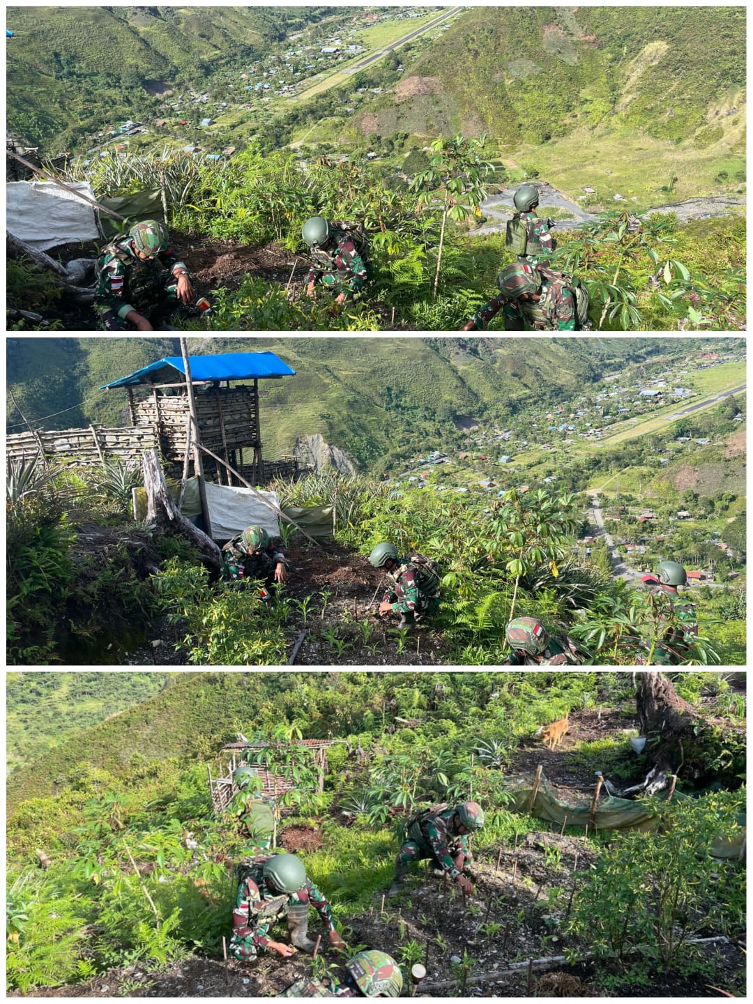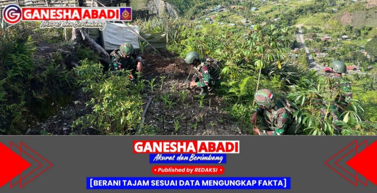 Puncak Jaya, Papua – Dalam upaya mendukung ketahanan pangan nasional, Satgas Yonif 715/Mtl Pos Kulirik menggelar kegiatan pertanian bersama masyarakat di wilayah penugasan. Program ini bertujuan untuk meningkatkan kesejahteraan warga serta memperkuat ketahanan pangan di Puncak Jaya, Papua, pada Minggu (30/03/2025).