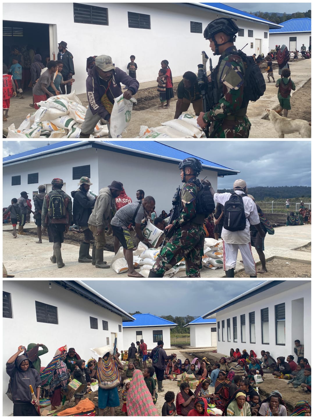 Masyarakat dari kedua distrik tersebut berbondong-bondong mendatangi gudang logistik untuk menerima bantuan yang diberikan oleh Pemerintah Kabupaten Puncak. Dalam prosesnya, Satgas Yonif 751/VJS mendapat amanah untuk membantu penyaluran karena terbatasnya akses transportasi yang menyulitkan pemerintah menjangkau wilayah tersebut.