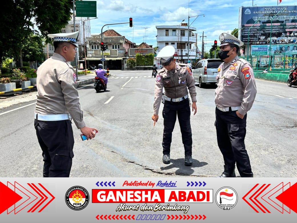 BANYUWANGI — Menyikapi banyaknya keluhan masyarakat soal jalan berlubang di depan Masjid Agung Baiturrahman Banyuwangi, Satlantas Polresta Banyuwangi bergerak cepat dengan melakukan patroli jalan berlubang, Kamis (06/11/2025).