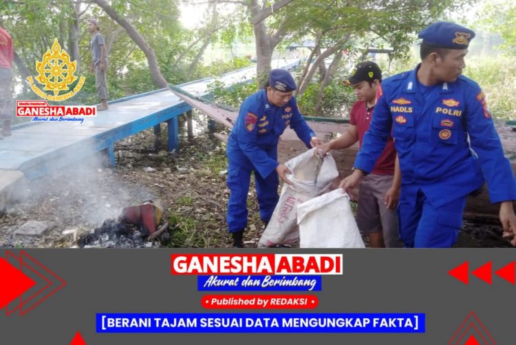 Sidoarjo – Satpolairud Polresta Sidoarjo bersama para nelayan di Tlocor, Kecamatan Jabon, menggelar aksi bersih-bersih kawasan pesisir pada Jumat (21/2/2025). Kegiatan ini dilakukan untuk mengantisipasi dampak cuaca ekstrem serta mencegah potensi banjir akibat penumpukan sampah.